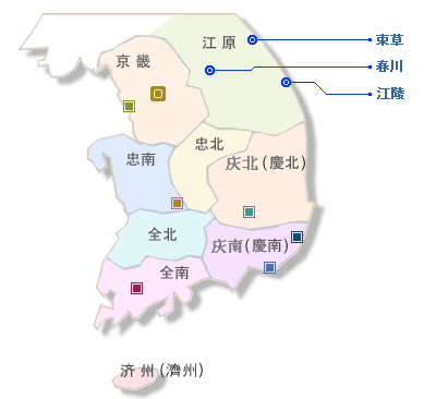 韓國的東北地域是一個山崖和大海協調形成的非常理想的休養勝地。不管是多麼小的海岸和村莊都有很多豐富多彩的歷史文物或絕妙的景地。